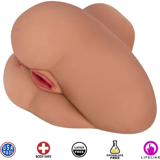 Este sexy masturbador de vagina y culo de silla de montar tiene un aspecto y una sensación realistas, detalles pintados a mano realistas y dos estrechos túneles de amor para el máximo placer realista.