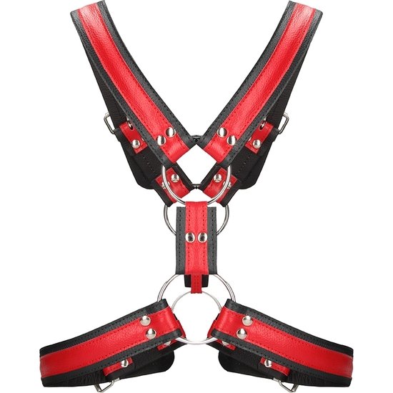 Está hecho con cuero de calidad superior y acero inoxidable. Tiene 4 juntas tóricas robustas, 2 por delante y 2 por detrás. Gracias a estos aros podrás darle una vuelta de tuerca a tus fantasías bondage acoplando tus accesorios sado favoritos. Las cuatro correas ajustables con hebillas ultra resistentes permiten que el arnés se ciña perfecta y cómodamente, dándote, a su vez, un aspecto masculino y dominante.