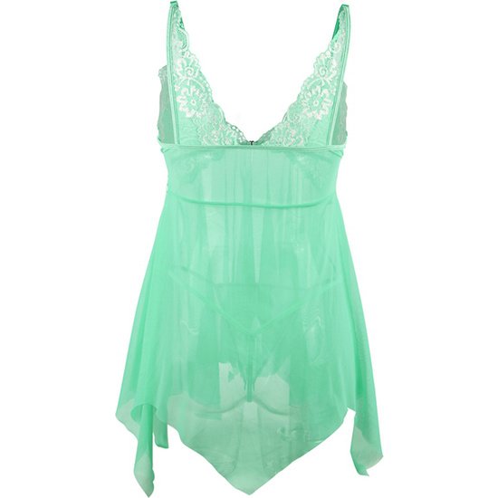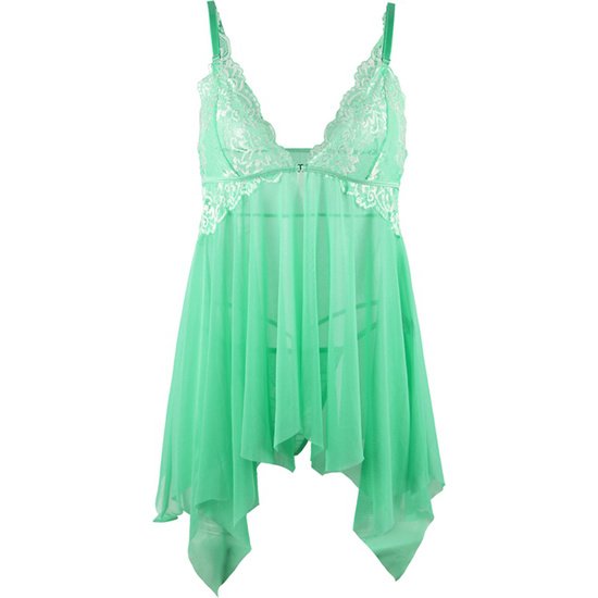 BABYDOLL DE FALDA IRREGULAR CON COSTURAS DE ENCAJE VERDE