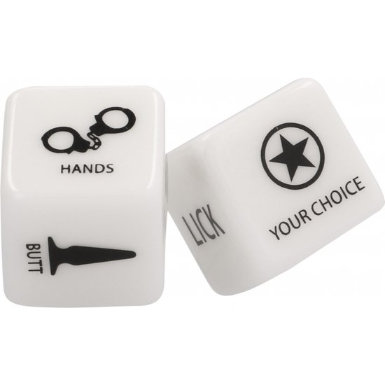 ¡Lanza los dados y prepárate para experimentar una sensación de BDSM totalmente nueva! Ríndete al poder del azar, ¡el primer dado te dice qué tienes que hacer y el segundo te dice dónde tienes que hacerlo!