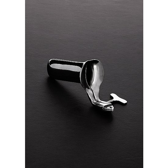 Hay un tornillo en la parte posterior de este espéculo que le permite abrirse al nivel deseado.