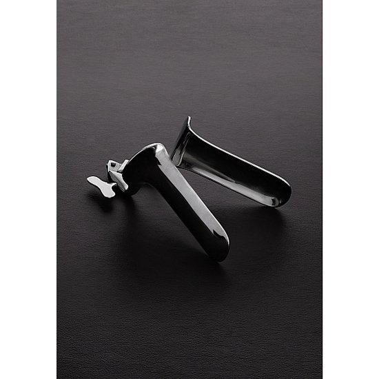 Hay un tornillo en la parte posterior de este espéculo que le permite abrirse al nivel deseado.