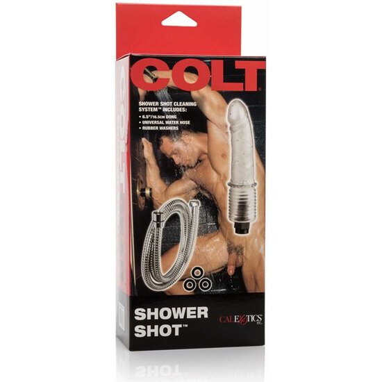 COLT SHOWER SHOT es un teléfono para la ducha con forma de pene, fabricado de gelatina, con decenas de pequeños orificios por donde sale el agua a presión.