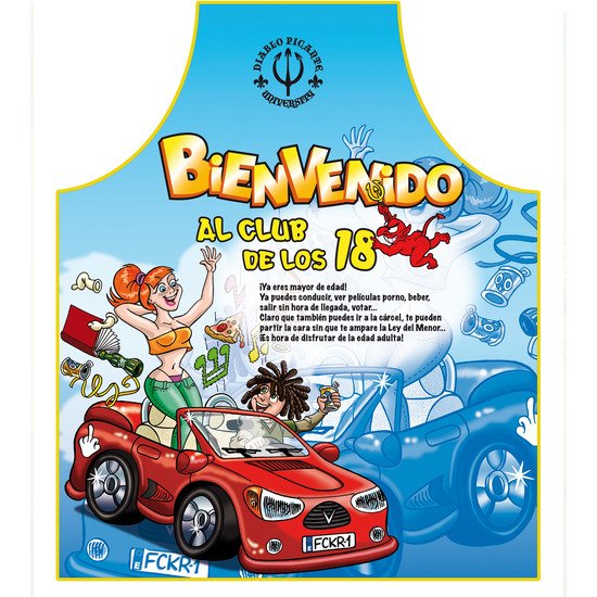 Fantástico delantal con divertidas ilustraciones e imágenes eróticas.