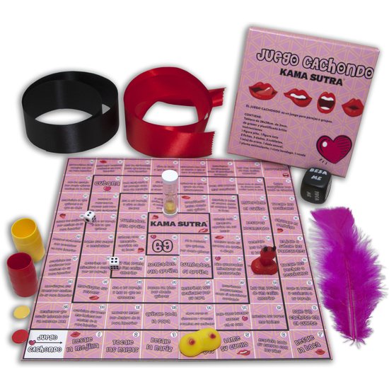 CONTIENE: INSTRUCIONES, CINTA DE BONDAGE, VENDA PARA LOS OJOS, PLUMA ESTIMULANTE, UN DADO DE GRAN CALIDAD DE 25 mm. RELOJ DE ARENA,1 FIGURA PITO Y FIGURA TETA, 2 FICHAS 2 CUBILETES 2 DADOS NUMERICOS Y UN TABLERO PLASTIFICADO A TODO COLOR DE 2 mm.