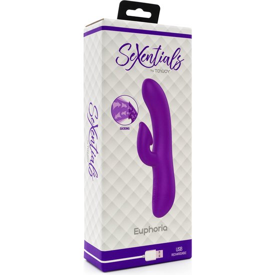 Euphoria es un vibrador único estilo conejo con un estimulador de clítoris de succión de la colección SeXentials de TOYJOY.
