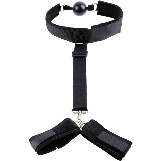 Los puños de neopreno se ajustan fácilmente con velcro para adaptarse a la mayoría de los tamaños. La correa trasera también se puede ajustar para cambiar la ubicación de las muñecas del sujeto. La mordaza compuesta por una pelota de goma, está fabricada con PVC libre de ptalatos. Este kit es perfecto para el juego BDSM de principiantes y lo suficientemente fuerte, incluso para los usuarios más experimentados!
