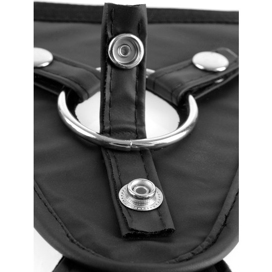 Cuando necesitas un arnés que mantenga todo en su lugar para los trabajos duros, este arnés universal es la única solución y la única opción de obtener resultados satisfactorios. Diseñado para soportar juegos fetichistas extremos, este arnés cuenta con cintas ajustables y una anilla de silicona elástica en la junta tórica. El arnés universal se adapta a una gran variedad de dildos y está hecho para jugar duro!