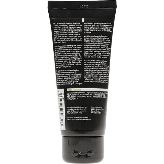 Lubricante a base de agua elaborado con ingredientes naturales. Este aceite vegano no contiene fragancias sintéticas, colorantes ni conservantes, y el envase está hecho de plástico reciclado. Adecuado para su uso con condones de latex.