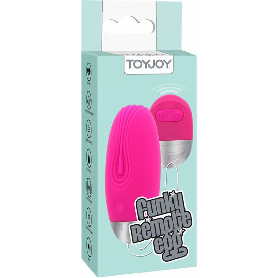 ¡Ríndete a la excelente diversión erótica y ponte a la moda! ¡El Funky Remote Egg de los Funky Fun Toys de TOYJOY deleitará tus zonas erógenas con su poderoso placer!