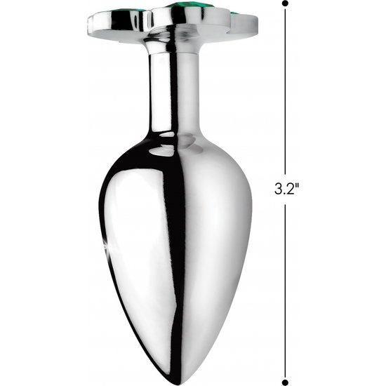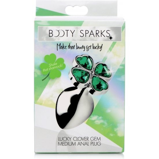 ¡Haz que ese botín tenga suerte con este tapón anal de metal mediano con un diseño de joya de trébol en la base!