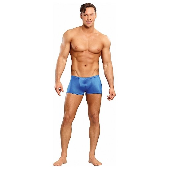 Boxer satinado de color azul. La cintura es ancha y elástica para acomodarse a tu cuerpo.