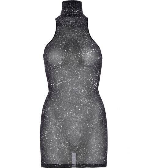Mini vestido con cuello alto en lurex brillante y elastano.