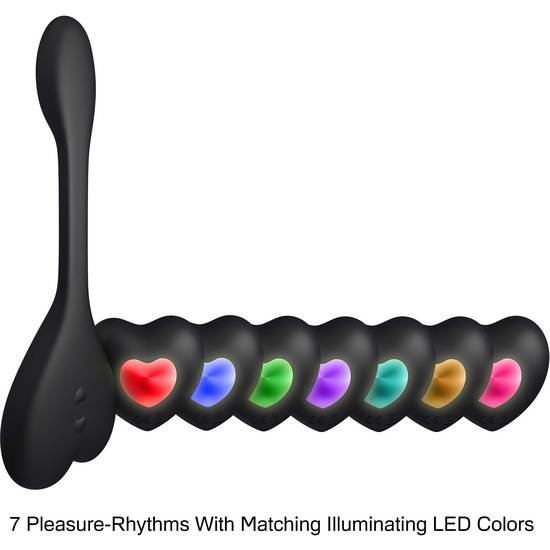 Natya es completamente recargable, con potentes vibraciones duales con 7 ritmos diferentes con colores LED de iluminación.