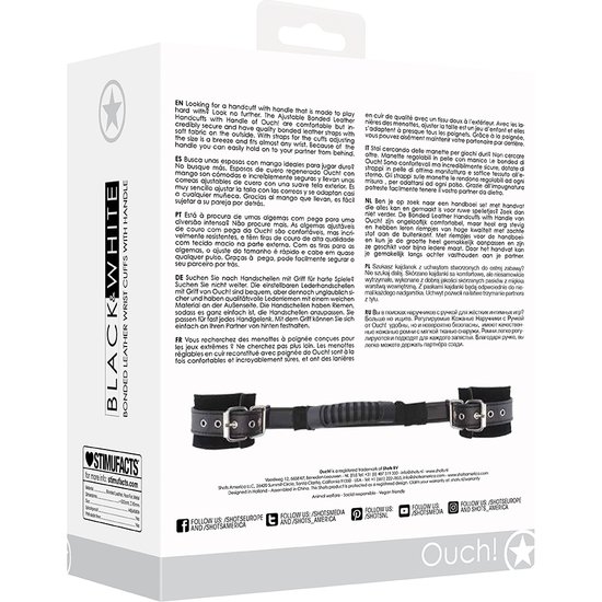 OUCH! – BONDED LEATHER HAND CUFFS WITH HANDLE – WITH ADJUSTABLE STRAPS – ESPOSAS DE CUERO