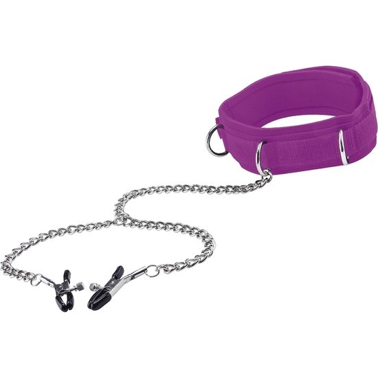 OUCH COLLAR WITH NIPPLE CLAMPS PURPLE