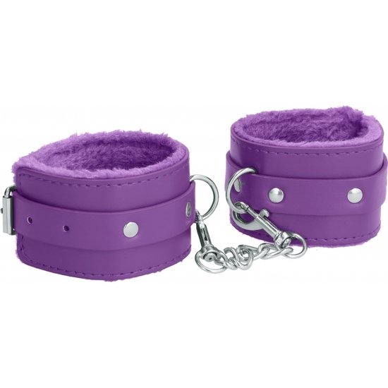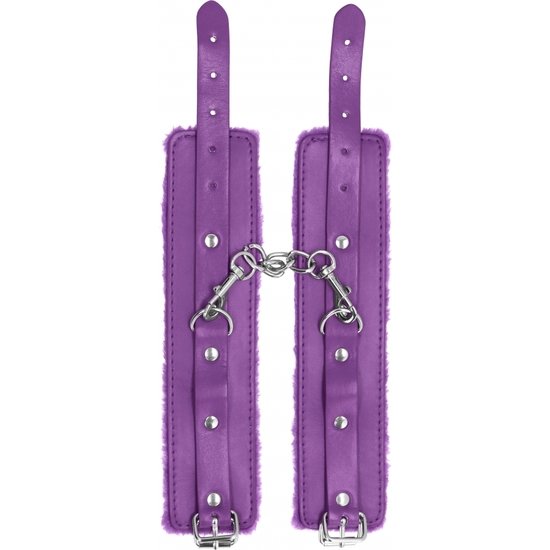 OUCH PLUSH LEATHER HAND CUFFS BLACK PURPLE