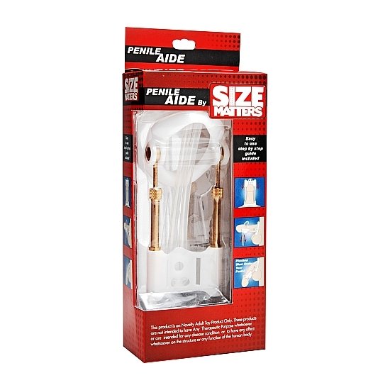 El Penile Aide es un extensor de longitud y circunferencia mediante el uso de la tracción, a partir de sus barras de acero de resorte, para ayudar a la capacidad natural del cuerpo para cambiar y desarrollarse bajo la influencia física.
