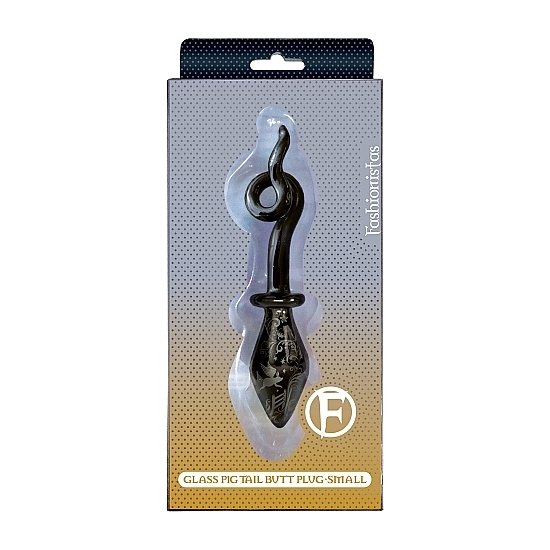 Elegante tapón de vidrio con cola que semeja a la de un cerdito.