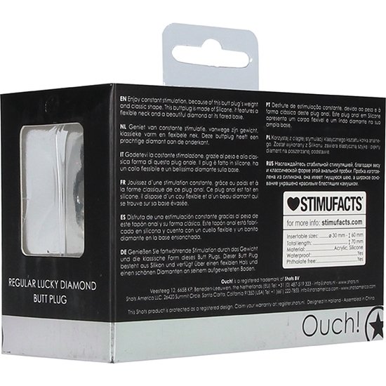 Este plug anal está fabricado en silicona y cuenta con un cuello flexible y un gracioso diamante en la base.