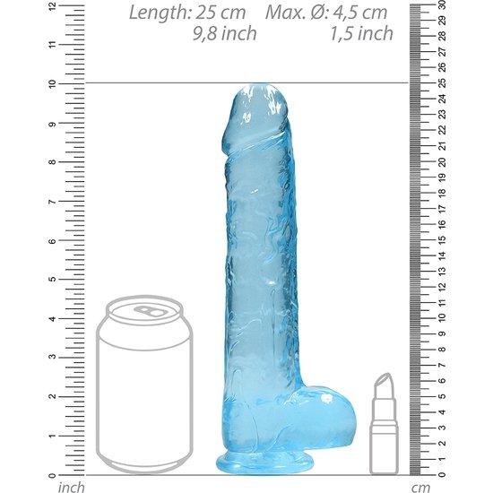 Este modelo REALROCK CRYSTAL CLEAR ha sido diseñado con bolas realistas para darte una experiencia realista añadida. Todos viene con una copa fuerte de succión para que puedas adherirlo sobre casi cualquier superficie.. Todos los REALROCK CRYSTAL CLEAR no contienen aftalatos ni látex, son seguros para el cuerpo y no tiene poros lo que hace que sean fáciles de limpiar y les da una mayor durabilidad.