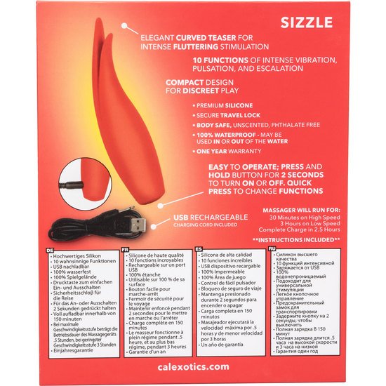 El Red Hot ™ Sizzle seguramente encenderá un fuego en tu vida amorosa con los teasers de doble curva y las 10 potentes funciones de vibración.