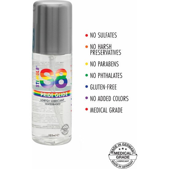 El S8 Pride Glide 125ml es un deslizamiento a base de agua extra espeso y duradero; perfecto para cualquier aventura sexy!