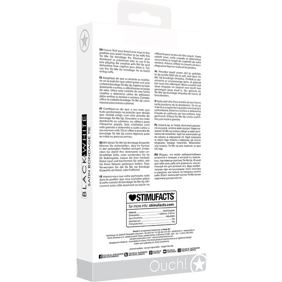 Asegúrese de que su amante se mantiene en la posición que usted quiere con esta corbata bondage Tie Me Up. Explore su lado dominante o sumiso, o utilícela para un juego de roles. Utilice esta corbata de una forma creativa y determine cómo de prisionero debe sentirse su esclavo o esclava. Consejo: utilice la corbata bondage Tie Me Up como esposas para manos o piernas.