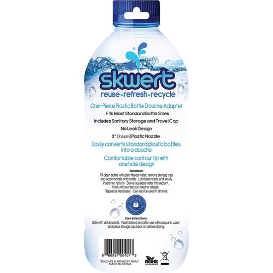 Este adaptador de enema está hecho específicamente para esos encuentros en los que no tienes tiempo para prepararte por completo. La boquilla de plástico roscada de una pieza se adapta a la mayoría de las botellas de agua de tamaño estándar. Este dispositivo imprescindible está diseñado para caber en su bolsillo, bolso o mochila, para una limpieza en movimiento para esos momentos inoportunos que a veces surgen. Olvídese de buscar una ducha, solo busque una botella de agua, atorníllela y estará listo para comenzar.