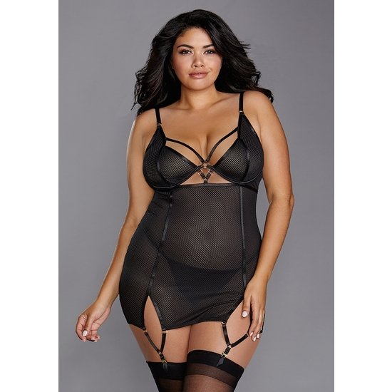 FISHNET TEXTURE POWER MESH GARTER SLIP – BLACK