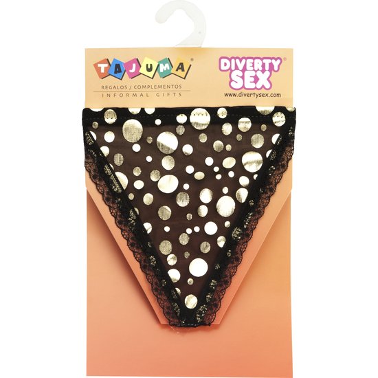 Es un tanga de chica de raso con lunares dorados ideal para regalar estas navidades o otra ocasión