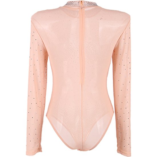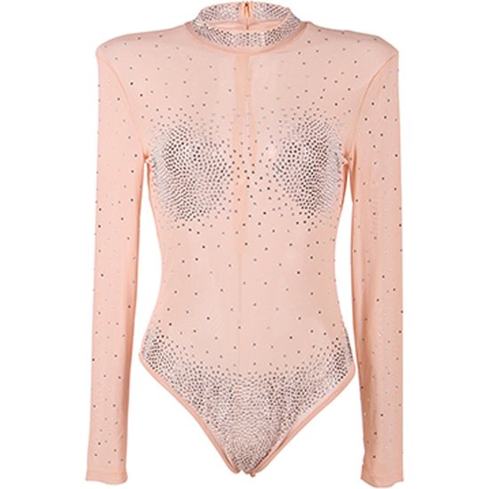 Teddy transparente de mujer efecto diamante imitación de malla de manga larga