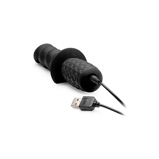 ¡Una cabeza tipo gallo con 3 bultos más definidos ofrece una textura increíble! Sujete la empuñadura texturizada y sumerja este suave y sedoso plug a través de su puerta trasera para experimentar 10 potentes configuraciones de vibración. Con solo presionar un botón en la base del mango, recorra 3 intensidades y 7 patrones de pulsación que lo dejarán boquiabierto mientras le sacuden el culo.