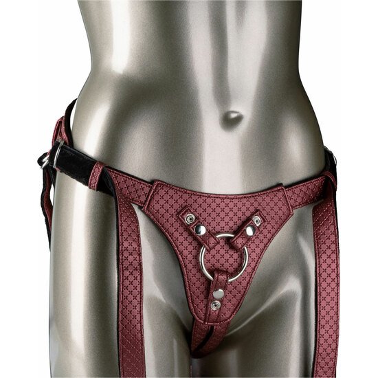 El lujoso arnés de Royal Harness está diseñado para brindar un rendimiento y comodidad con un diseño de encaje similar a un corsé, un forro de felpa aterciopelado y un cierre ajustable con hebilla.