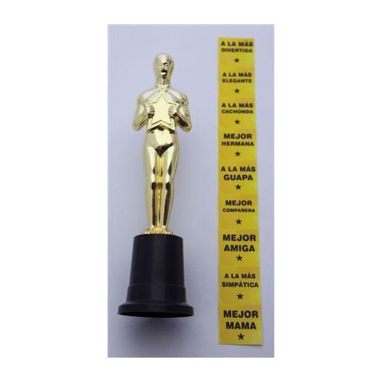 Trofeo de Oscar para chica con pegatinas con mensajes diferentes para todo tipo de ocasiones.