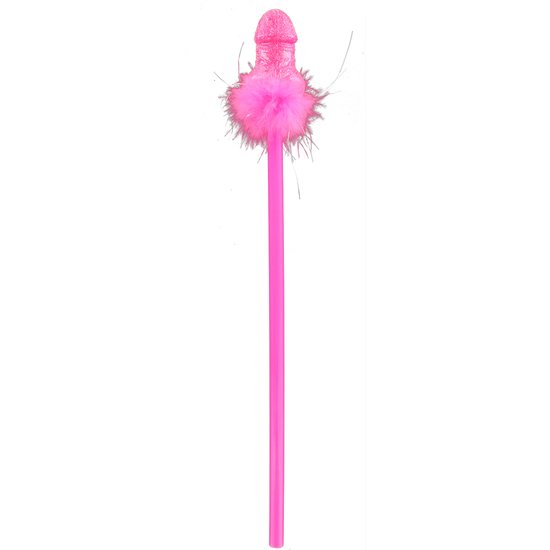 Varita mágica en forma de pene de purpurina rosa y plumas de marabú.