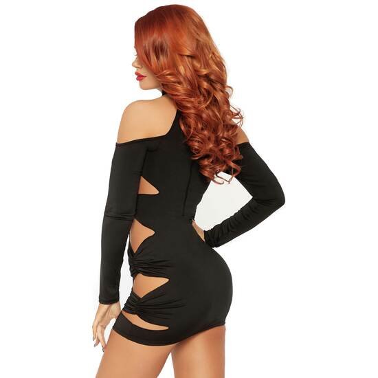 VESTIDO MANGA LARGA CON RECORTES NEGRO