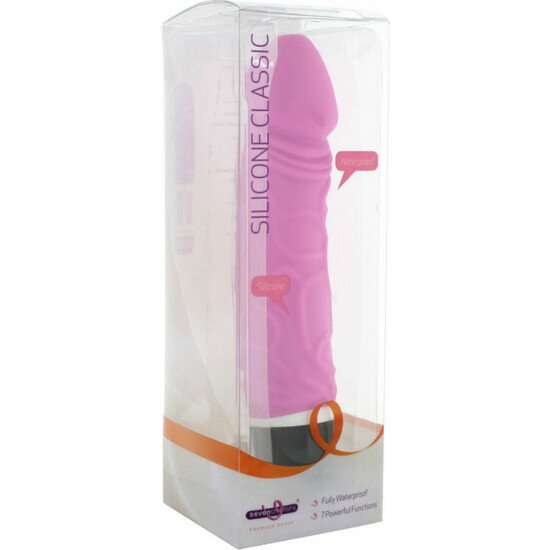 Este vibrador multivelocidad a prueba de salpicaduras tiene siete funciones diferentes.