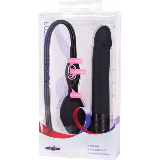 INFLATABLE VIBRATOR BLACK es un fantástico vibrador unisex de silicona que permite aumentar rápidamente hasta 2 veces su tamaño, mediante una bomba fácil de utilizar.