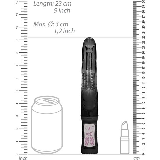 Con una altura de 23 cm, el ROTATING BEADED DOLPHIN VIBRATOR tiene una longitud de inserción de 11,5 cm y 3 cm de grosor. Este juguete súper silencioso (menos de 50 db) es impermeable (IPX7) y funciona con 4 pilas AAA (no incluidas) para darte un montón de tiempo de placer.