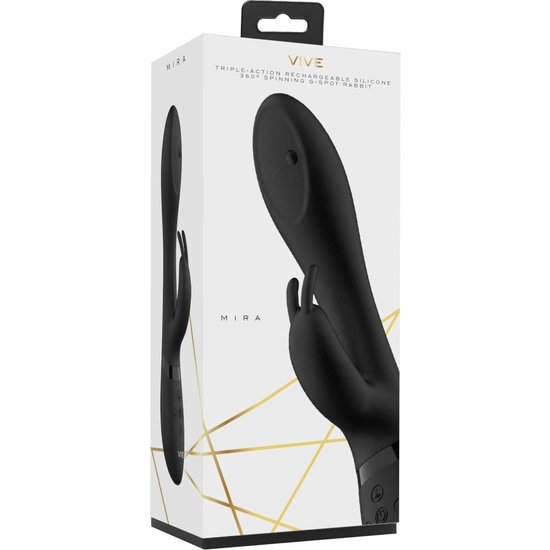 El conejo de punto g de silicona recargable giratorio (Mira) contiene 10 cuentas giratorias de función en el estimulador g-spottip, más una punta vibratoria de punto g de 10 funciones y un vibrador de clítoris dedicado de 10 funciones, el Mira satisfará su deseo más profundo.