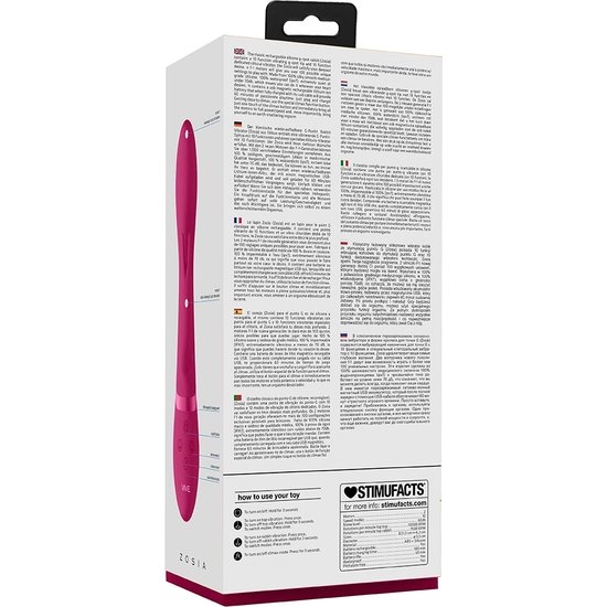 El clásico conejo de punto g de silicona recargable (Zosia) contiene una punta de punto g vibrante de 10 funciones y un vibrador clítorico dedicado de 10 funciones, el Zosia satisfará su deseo más profundo.